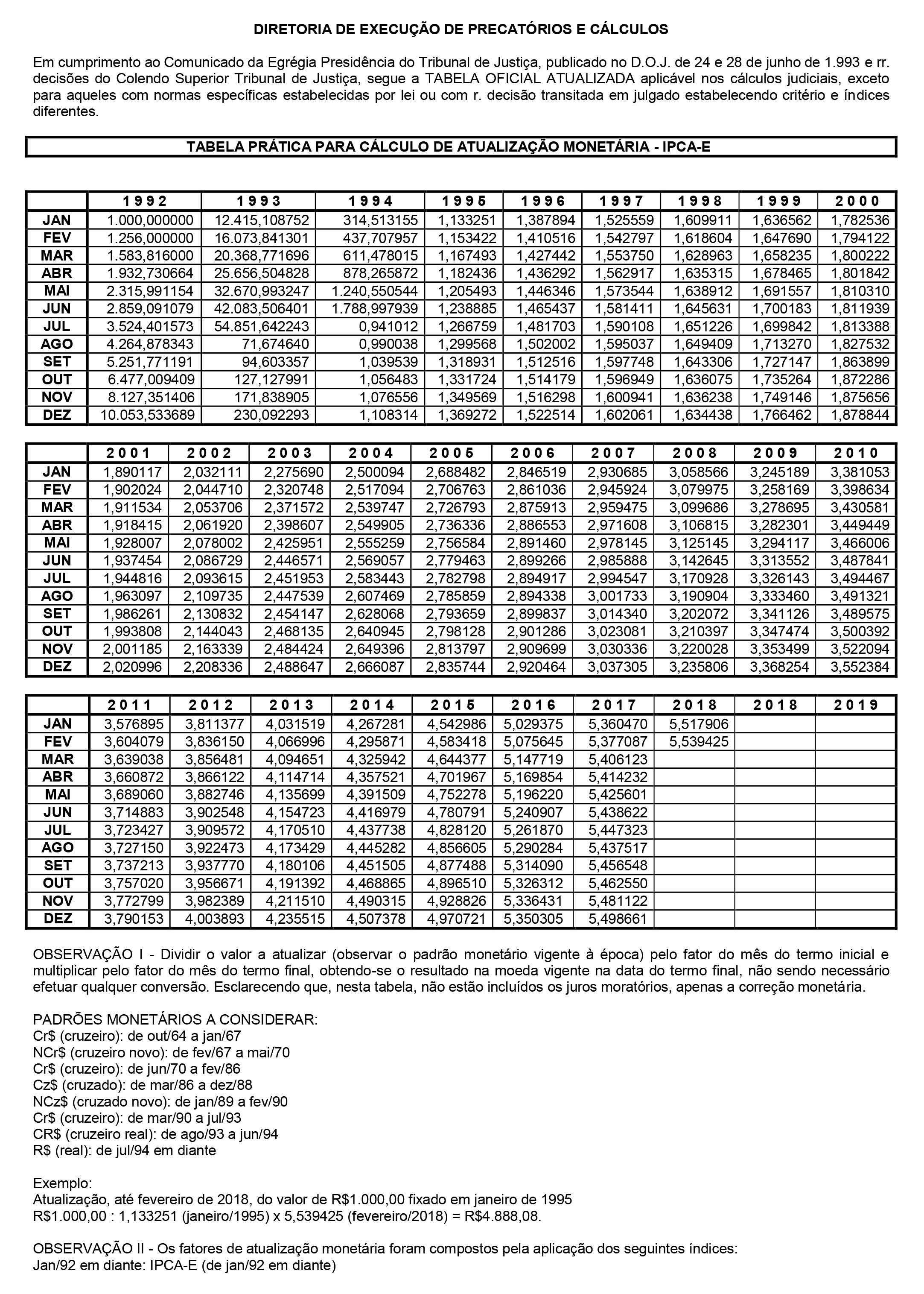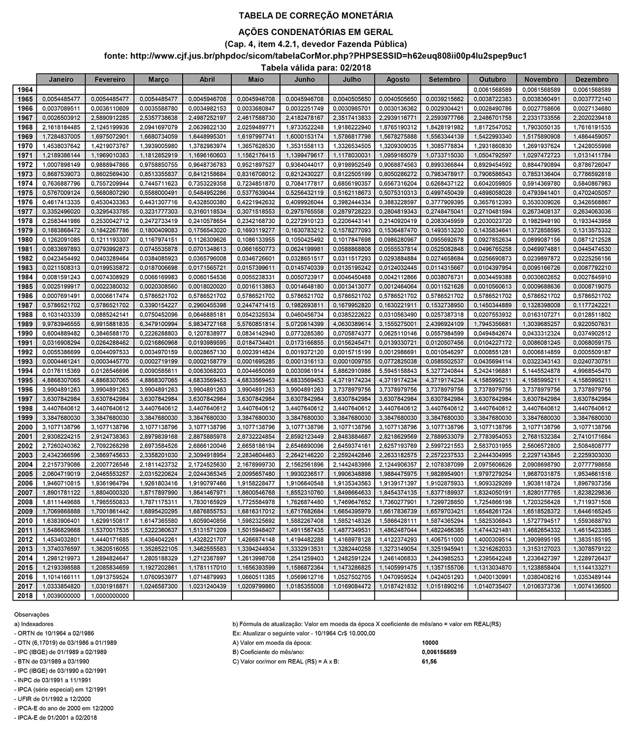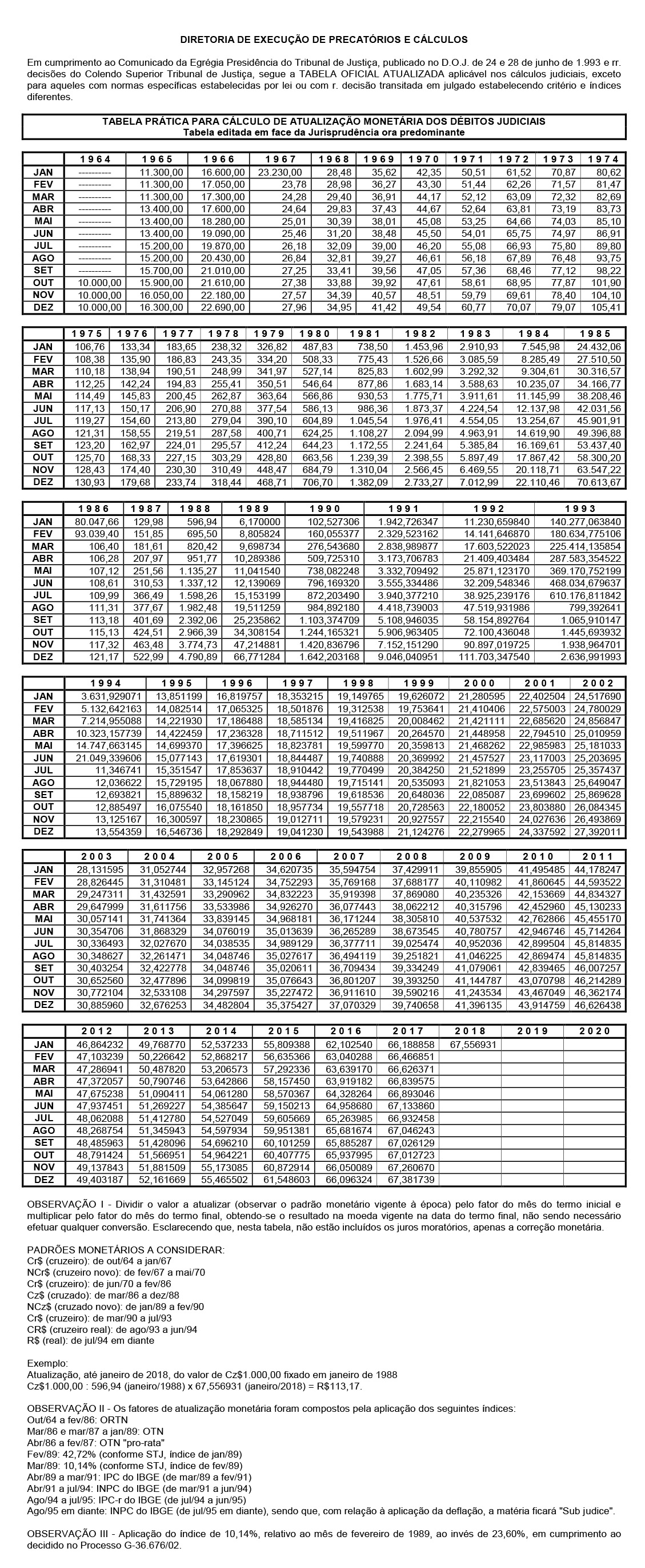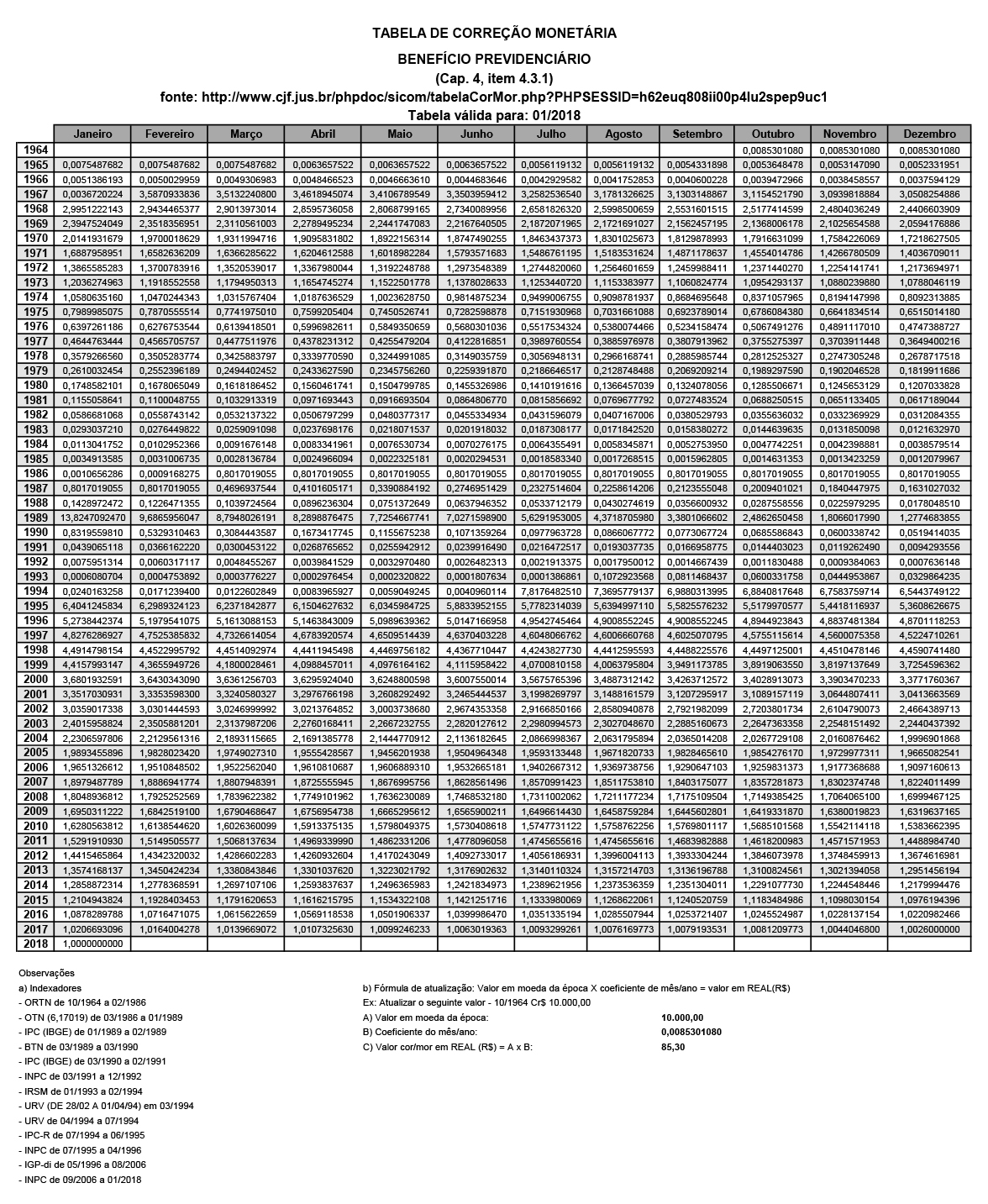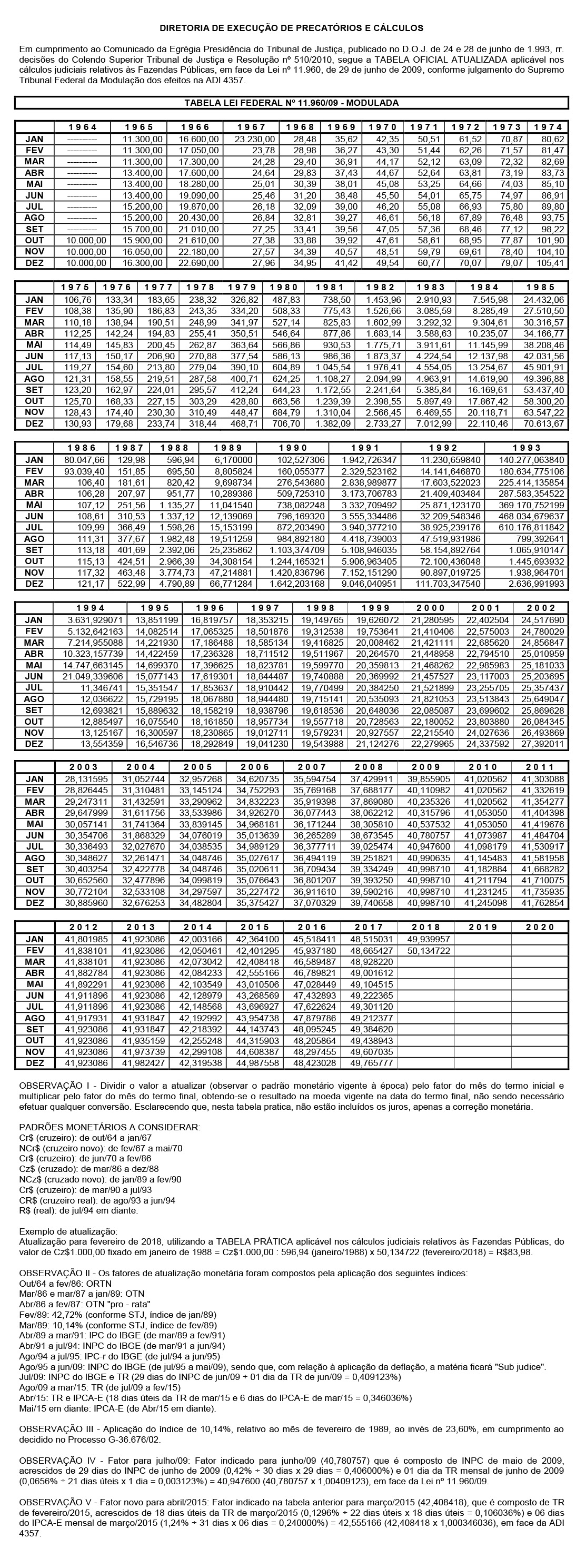 Revisão de benefício ORTN-OTN entre 06.1977 a 10.1988 - Tabela Santa Catarina